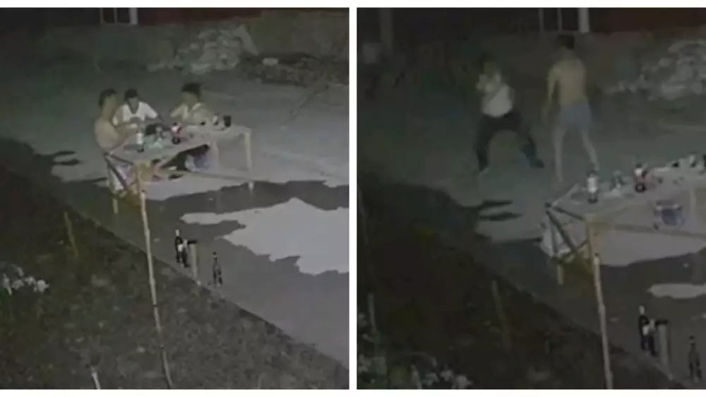 Информацию в Сети опубликовал журналист Михаил Козачков. По его данным, инцидент произошел ночью во дворе частного дома. Происходившее зафиксировали камеры наружного наблюдения. Судя по ролику, до начала конфликта мужчины распивали алкоголь.