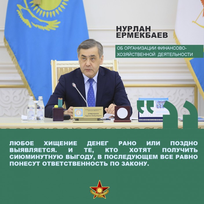 В данном контексте главой оборонного ведомства поручено использовать каждый тенге, выделенный из бюджета на нужды Вооруженных Сил, строго по назначению. В данном направлении в рамках второго этапа функционального анализа Министерство обороны намерено совершенствовать систему финансовой деятельности. В этой связи Министерство обороны осуществляет полный переход к системе бюджетирования, ориентированной на результат, при которой каждый военнослужащий почувствует и увидит итоги роста бюджетных вливаний.