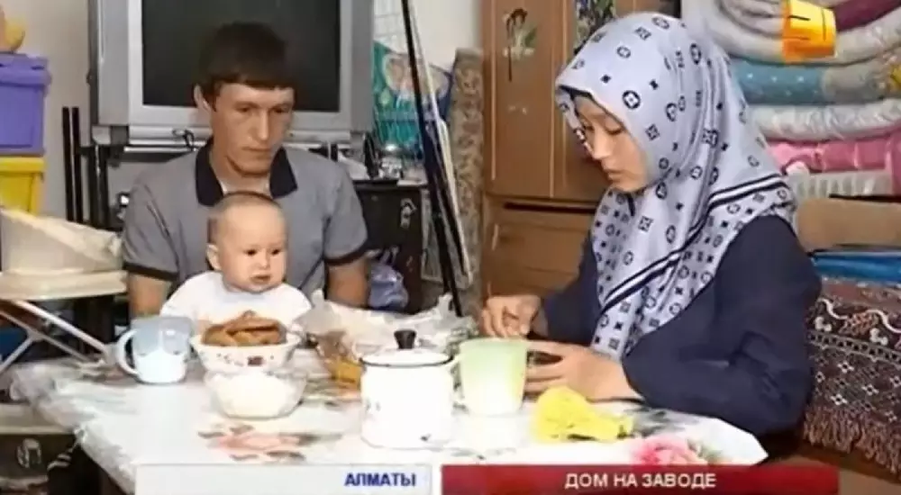 Молодая семья с грудным ребенком живет на заводе в Алматы Кадр "31 канала"