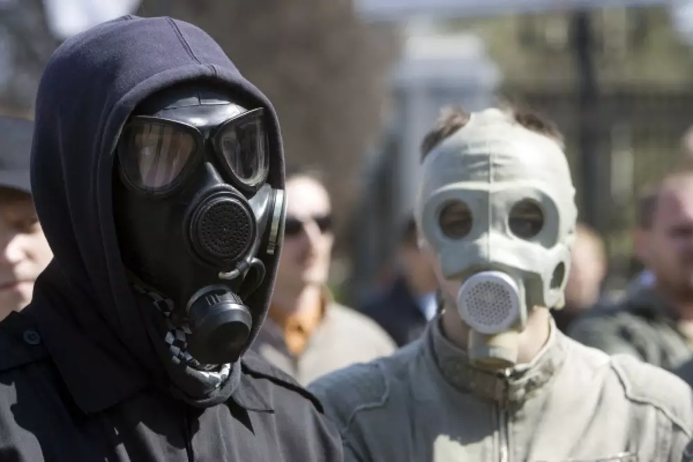 Молодежь Усть-Каменогорска в противогазах собирала выхлопные газы, выпускаемые общественным транспортом на остановках, передает корреспондент Тengrinews.kz.