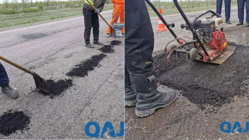 Моментальный ямочный ремонт тестируют на дорогах Казахстана Фото:qaj.kz