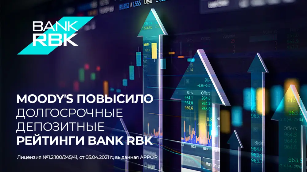 Международное рейтинговое агентство Moody’s Investors Service (Moody’s) повысило долгосрочные депозитные рейтинги АО "Bank RBK" до Ba2 с Ba3, а также базовую оценку кредитоспособности (BCA) и скорректированную BCA до ba3 с b1. Прогноз по долгосрочным рейтингам находится на "стабильном" уровне.