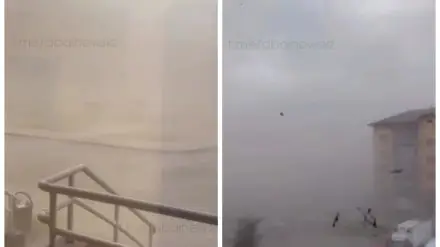 На кадрах видно, что от пыли и песка, поднявшихся в небо, в городе стало темно. О силе ветра можно судить по тому, как под его натиском гнутся деревья.