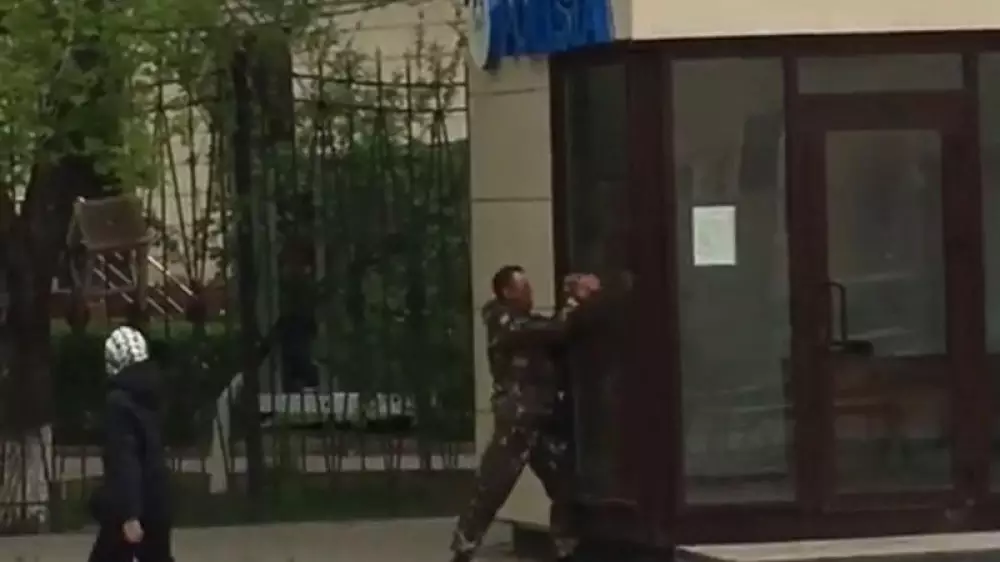 Мужчина бил кирпичом по пункту полиции в Уральске Кадр из видео