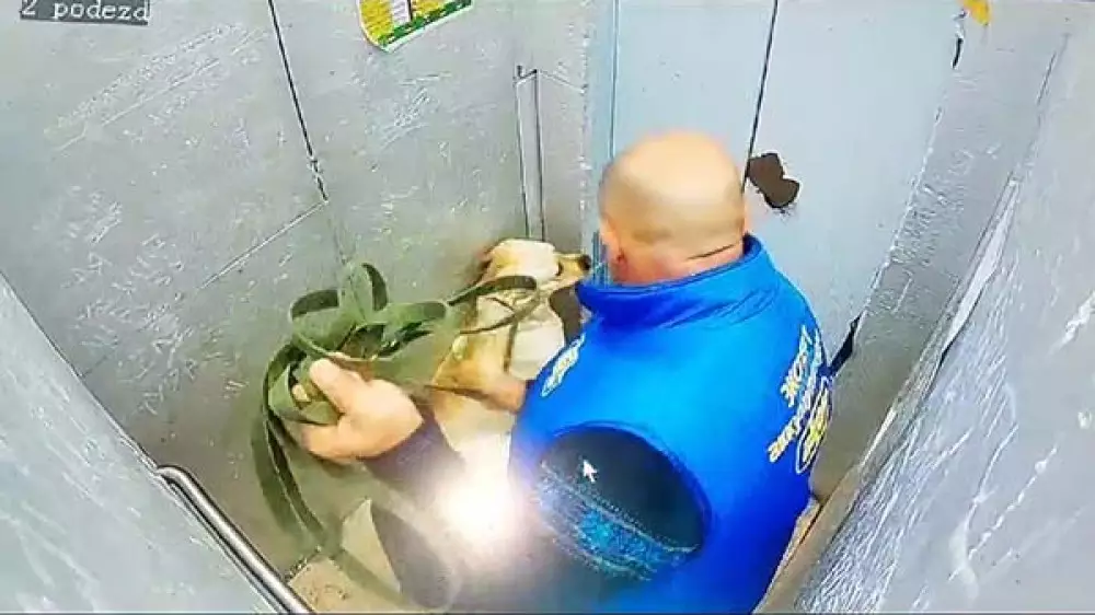 "По их словам, инцидент произошел сегодня, 4 сентября, около полуночи. На кадрах мужчина в жилетке с надписью "Эксперт аккумуляторов" несколько раз резко дергает собаку за поводок, потом бьет кулаком и пинает. Животное от испуга обмочилось прямо в лифте", - отмечает "Наша газета".