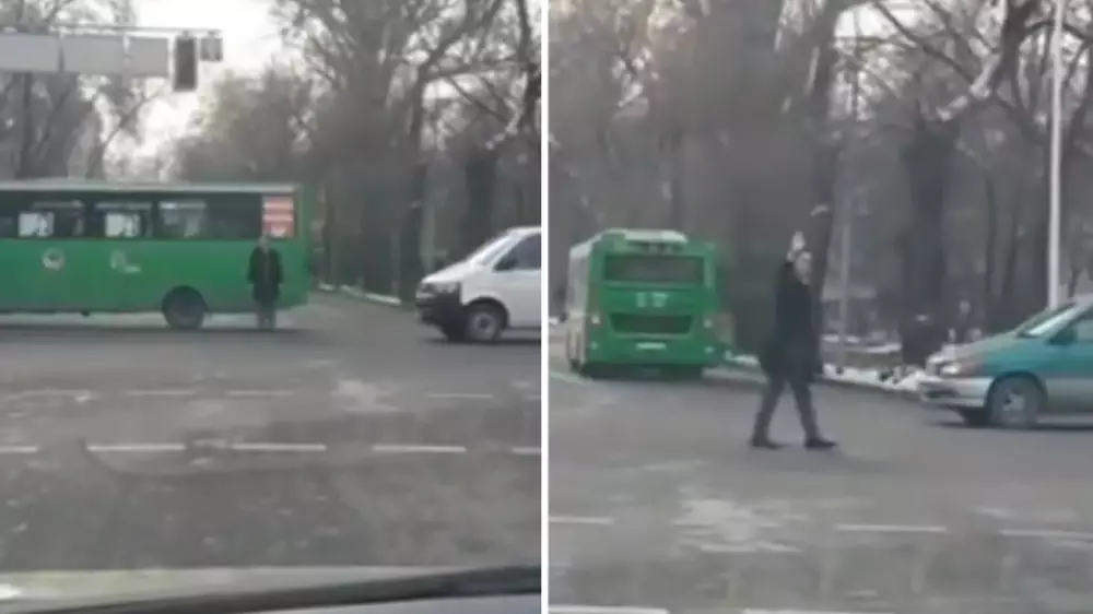 В Алматы мужчина вышел на перекресток с неработающими светофорами вместо регулировщика. Инцидент был снят на видео, передает корреспондент Tengrinews.kz.