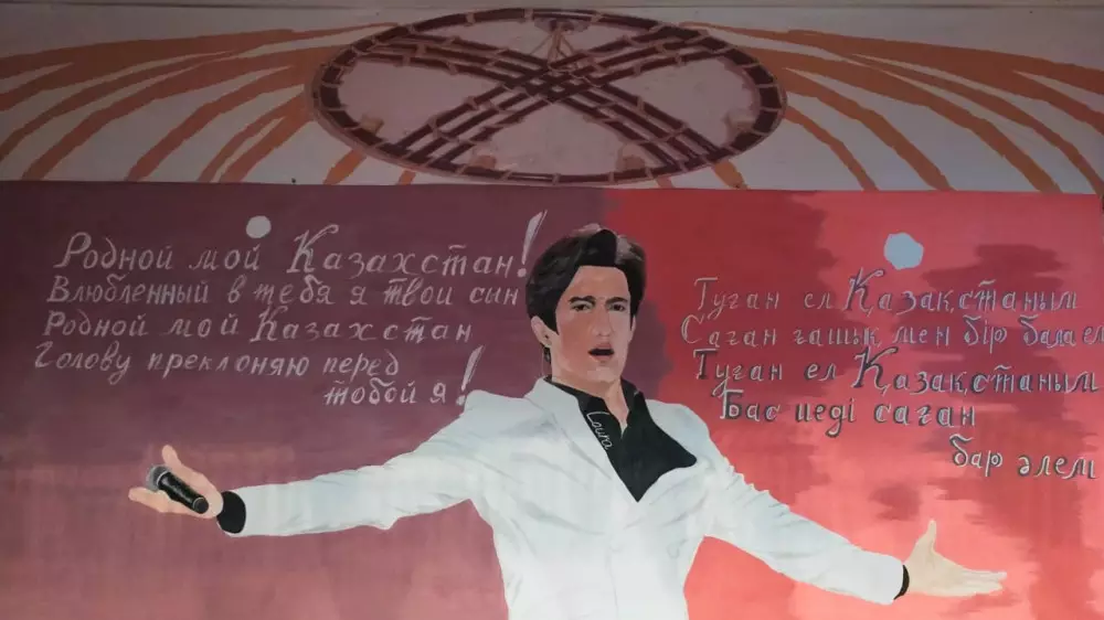На создание мурала у осужденного ушло пять дней. Возле портрета звезды он добавил строки одной из своих любимых песен "Қазақстан".