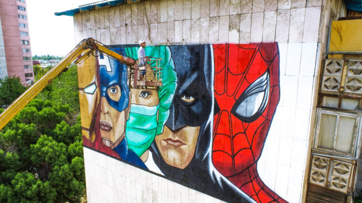 Сейчас проект осуществляет творческая команда в лице молодого и креативного художника Еркегали Имангали, а также Жазиры Жумабаевой и Жадыры Отарбековой. Ранее они же рисовали героев современности, находящихся на передовой в борьбе с пандемией.
