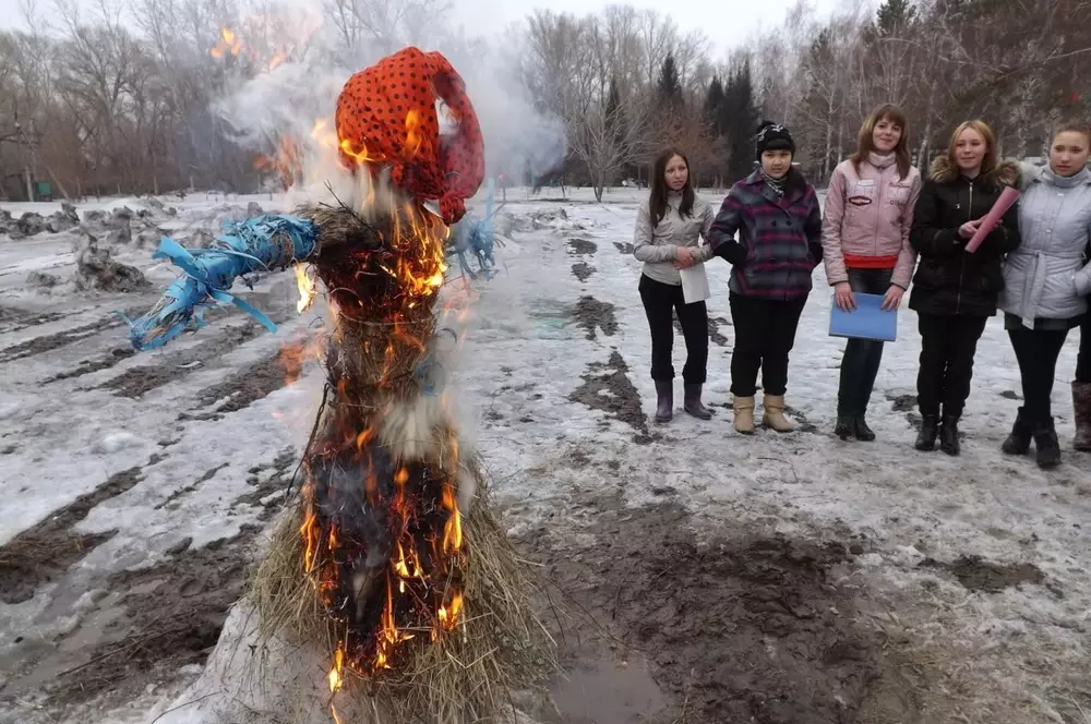 Жители Семея широко отпраздновали Масленицу, передает корреспондент Tengrinews.kz. Как известно, Масленица длится семь дней. В детском биологическом центре попытались каждый день этого весеннего праздника отметить по-особому. Юннаты приняли участие в конкурсе рисунков, соревновались на лучшего знатока пословиц и поговорок, а также изготовили соломенное чучело - символ зимы, которое было установлено на территории центра. "По традиции участники праздника привязали к чучелу ленточки, загадали желание, а после сожгли, чтобы с ним сгорели все трудности и невзгоды", - пояснила методист организационно-массовой работы Виктория Волкова. Однако прыгать через горящий костер (чучело), разрешено было только взрослым, детей в это время угощали горячими блинами. Одновременно в городском Дворце культуры в честь Масленицы состоялся большой праздничный концерт, который был организован русским социальным культурным Центром. Перед горожанами выступил хоровой коллектив "Истоки". Артисты порадовали жителей русскими народными песнями и плясками, а скоморохи придали празднику яркость и веселье.