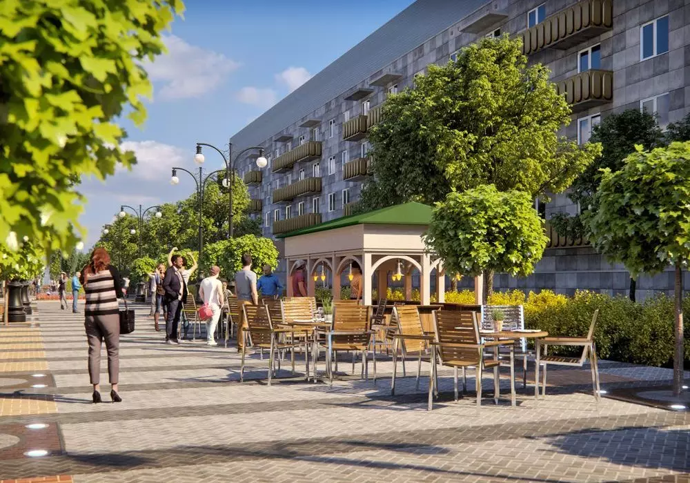Как пояснил ландшафтный архитектор Роман Шнайдерман, восприятие объектов при ходьбе пешком иное, чем при движении на машине. Поэтому при проектировании улиц было уделено отдельное внимание так называемым МАФам (малым архитектурным формам).