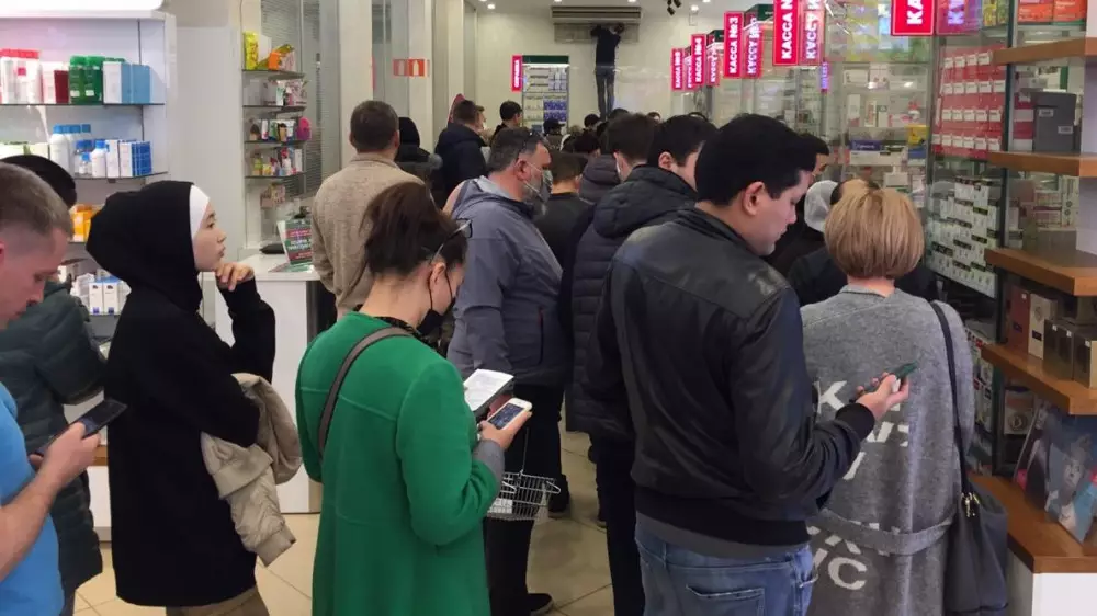 После информации о закрытии города на карантин количество посетителей аптек значительно увеличилось. Так, возле центральной аптеки на проспекте Назарбаева очередь наблюдается с утра.