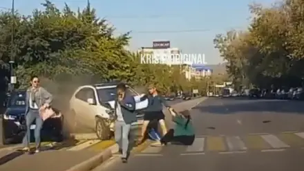 Наезд на пешеходов попал на видео в верхней части Алматы, передает Tengrinews.kz со ссылкой на inalmaty.kz.