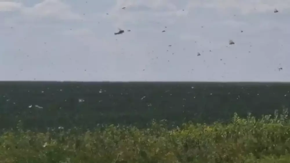 Стаю саранчи, налетевшую на поля в Клочковском сельском округе Костанайской области, заснял глава хозяйства. Он отметил, что обработок против вредителя ведется недостаточно, передает Tengrinews.kz со ссылкой на "Наша газета".
