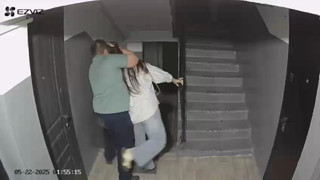 В видео молодая девушка заходит в подъезд и идет, вероятно, к квартире. Она не подозревает, что за ней в подъезд забегает мужчина, пока он не хватает ее за голову, зажимает рот ладонью и тащит под лестницу.