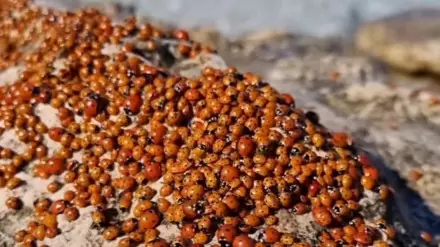 Жительница Актау Ольга Михайлова сняла на видео, как сотни божьих коровок облюбовали скалы в прибрежной зоне.