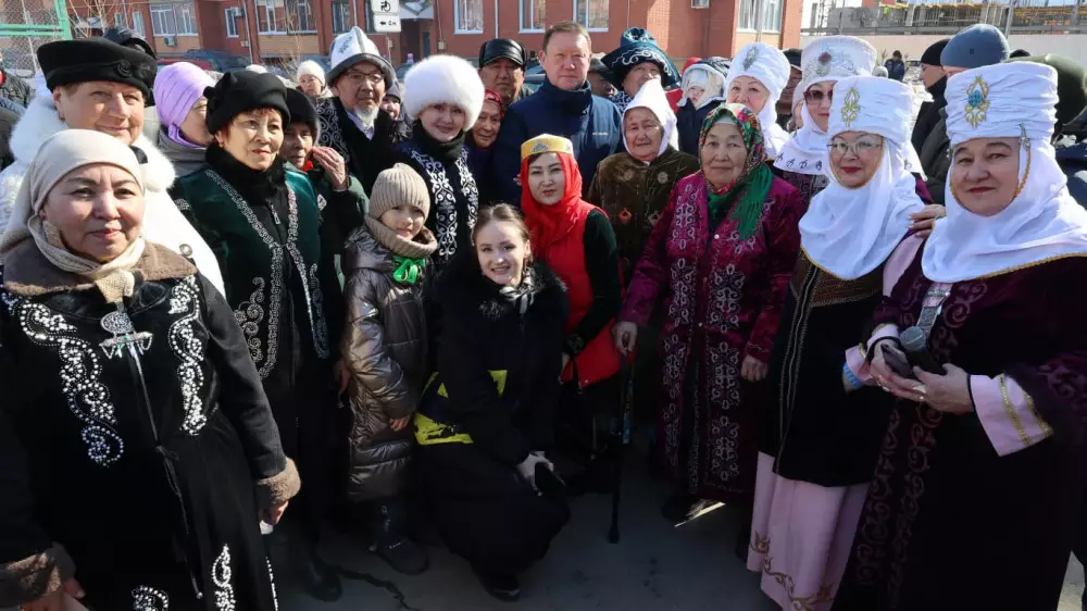 Песня о светлом весеннем празднике Наурыз в исполнении жителей звучала для гостей во дворе дома 22 микрорайона "Юбилейный". Он стал вторым адресом, куда приехал посмотреть на плоды творческих стараний конкурсантов Кумар Аксакалов.