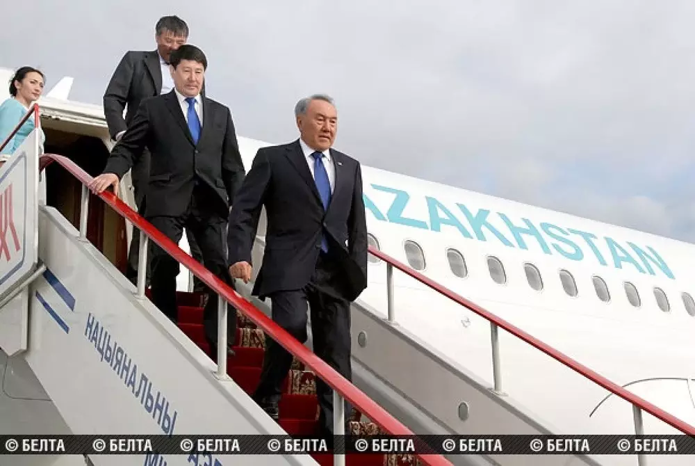 Назарбаев прилетел с визитом в Россию Нурсултан Назарбаев сходит с трапа самолета. Фото belta.by