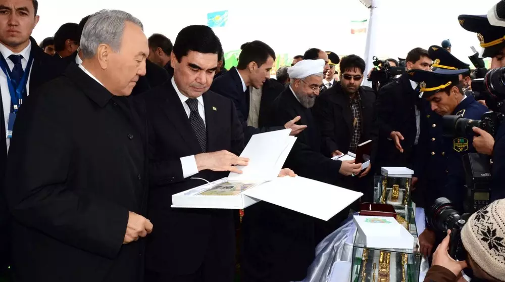 Презентация новой железнодорожной магистрали Казахстан - Туркменистан - Иран прошла на станции Акяйла в Туркменистане. Назарбаев поздравил Бердымухамедова и Рухани с завершением строительства железной дороги. "Вместе с президентом Туркменистана мы торжественно ввели казахстанский участок в прошлом году. Теперь данная магистраль соединяет три государства", - сказал Президент Казахстана.