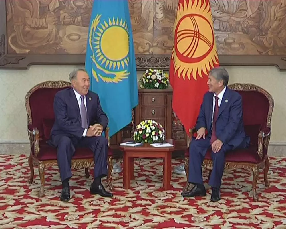 Президент Казахстана Нурсултан Назарбаев провел встречу с главой Кыргызстана Алмазбеком Атамбаевым в государственной резиденции "Ала-Арча" в Бишкеке, передает корреспондент Tengrinews.kz.