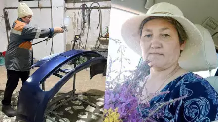 "По образованию я швея. В молодости работала по специальности, затем трудилась сестрой-хозяйкой в медучреждении. Мой муж Талгатбек Оспанов всю жизнь ремонтирует автомобили. Поначалу я просто немного помогала ему. А в 2006-м мы купили машину и вместе с мужем отремонтировали ее. С тех пор я его бессменный помощник, партнер. Он выравнивает кузов, а я чиню бамперы, крашу. Это трудоемкий процесс. Приходится и паять", - рассказывает Маржан Оспанова.
