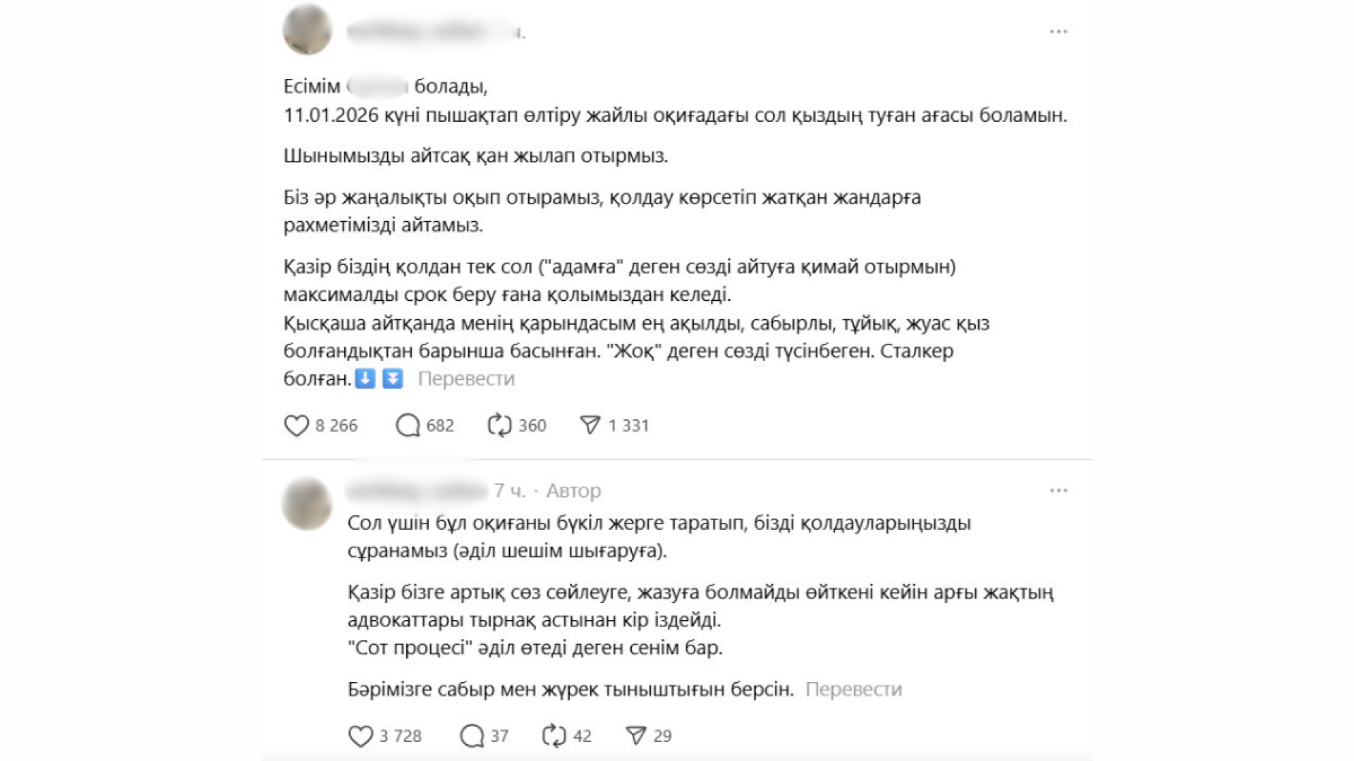 “Не понимал слова “нет“: брат убитой в Шымкенте сделал громкое заявление