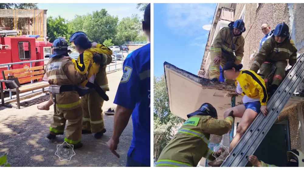 Спасатели Акмолинской области пришли на помощь девушке, которая спрыгнула на козырек подъезда, передает Tengrinews.kz со ссылкой на пресс-службу МЧС.