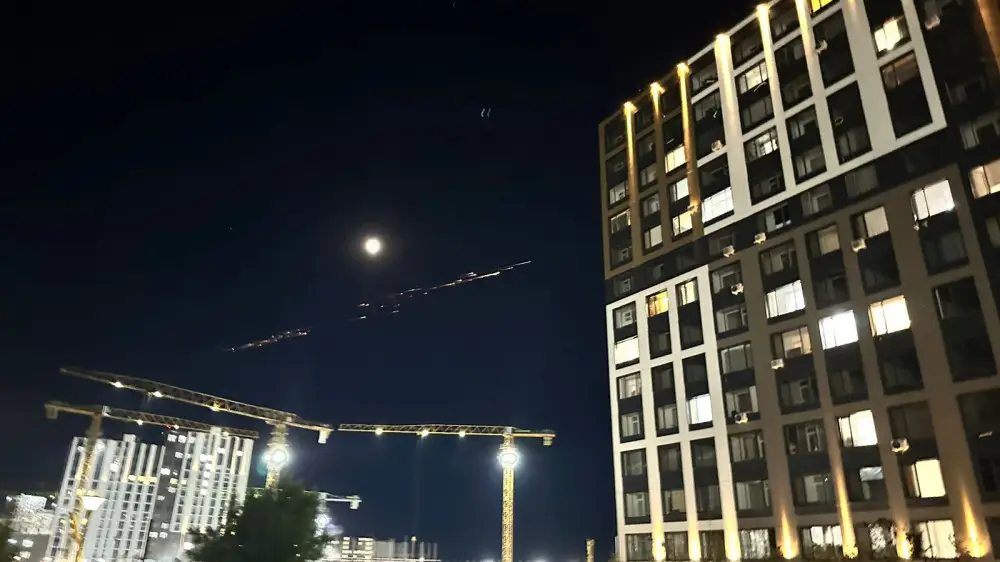 Подобные огни видели пользователи социальных сетей в небе над столицей Кыргызстана Бишкеком.