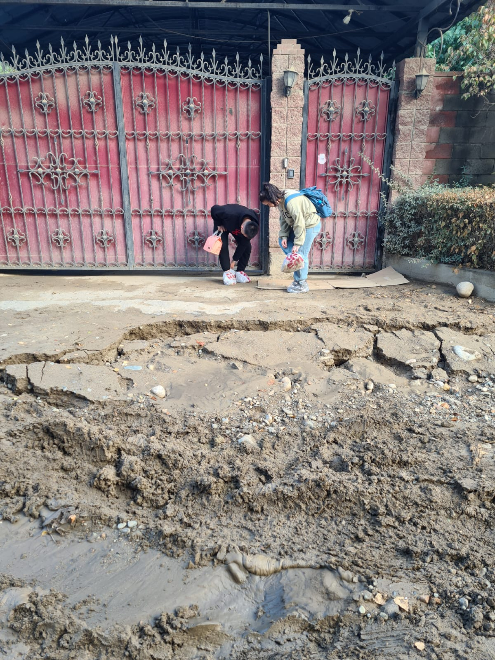 Они обходят участок, проверяют арыки и осматривают повреждённый грунт.