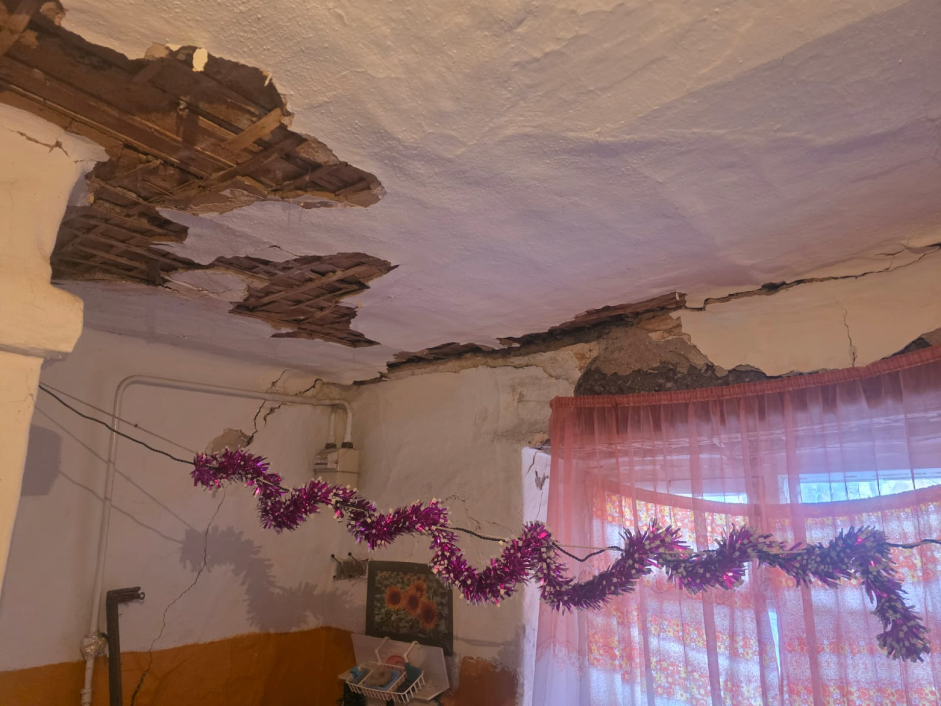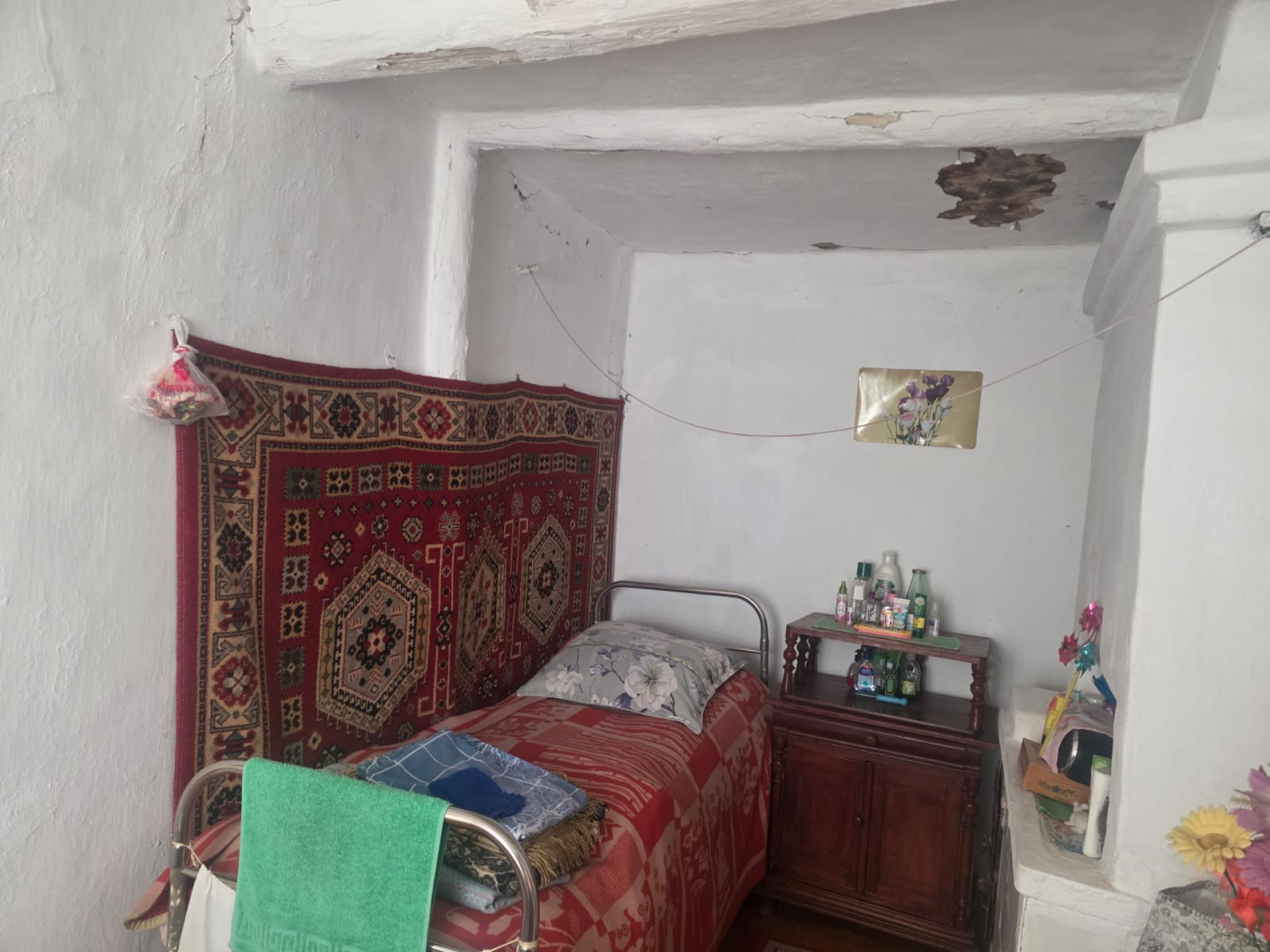 Дом давно просел: осел фундамент, с потолка сыплется штукатурка, по стенам пошли трещины. Но внутри — идеальный порядок.