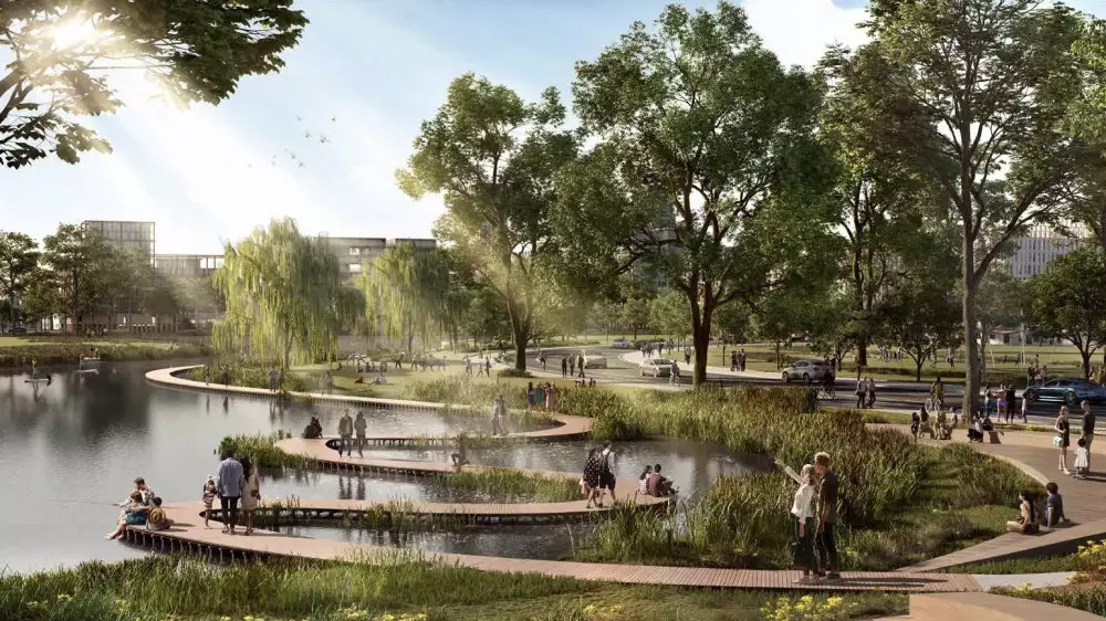 "По планам в данном районе в перспективе построят учреждения для досуга школьников, поликлинику на 400 посещений в смену, медицинский центр на 300 посещений, три школы на 5500 мест при имеющейся потребности в 4800 мест, три детских сада на 1035 мест и встроенные помещения для детских дошкольных учреждений. Будет возведено 1386,1 тысячи квадратных метров жилья. Планируется создать зеленый пешеходный бульвар у существующего водоема. При этом вся территория квартала будет благоустроена для комфорта и удобства горожан", - сообщили в управлении.