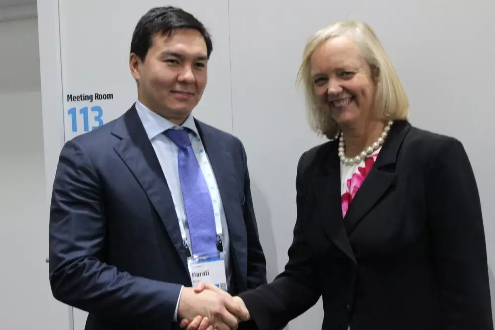 Председатель правления АО "Транстелеком" Нурали Алиев встретился с председателем правления корпорации Hewlett-Packard Мэг Уитмен, передает корреспондент Tengrinews.kz со ссылкой на пресс-службу компании.