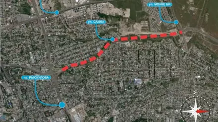 Также запланировано строительство двухполосных местных проездов. Будут установлены тротуары и велосипедные дорожки с каждой стороны - от проспекта Рыскулова до улицы Монке би (ранее улица Акын Сара).