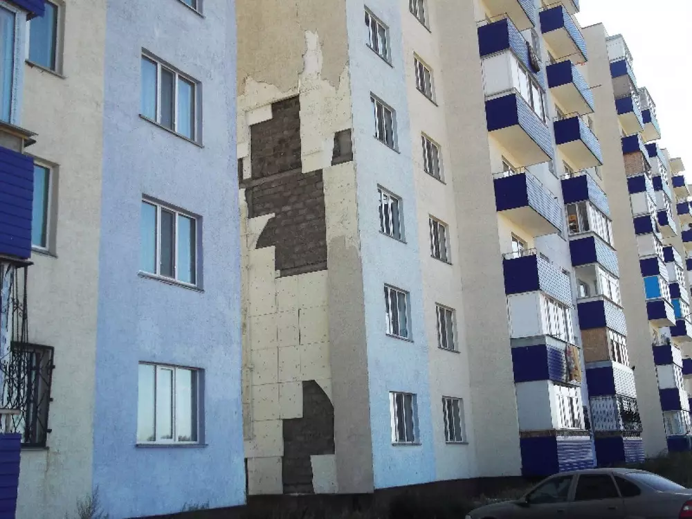 Дом был построен четыре года назад по госпрограмме, большинство квартир раздали по льготной ипотеке бюджетникам. Сейчас с дома отваливается отделка, и, по словам жильцов, он дал небольшой крен. Сообщается, что представители акимата также видели этот наклон, однако отметили, что нужно провести оценочную комиссию.
