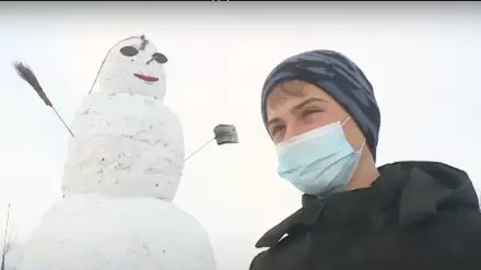 "Снеговика мы строили вдвоем. Вес у него где-то больше десяти тонн. Высота тоже больше семи метров. Строили его мы при помощи веревки. И были неудачные случаи, когда мы строили его", - сказал школьник Максим Хайруллин.