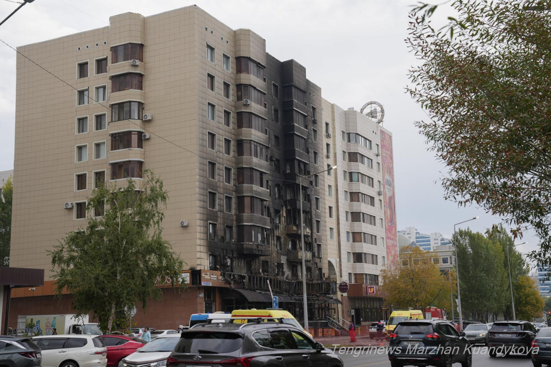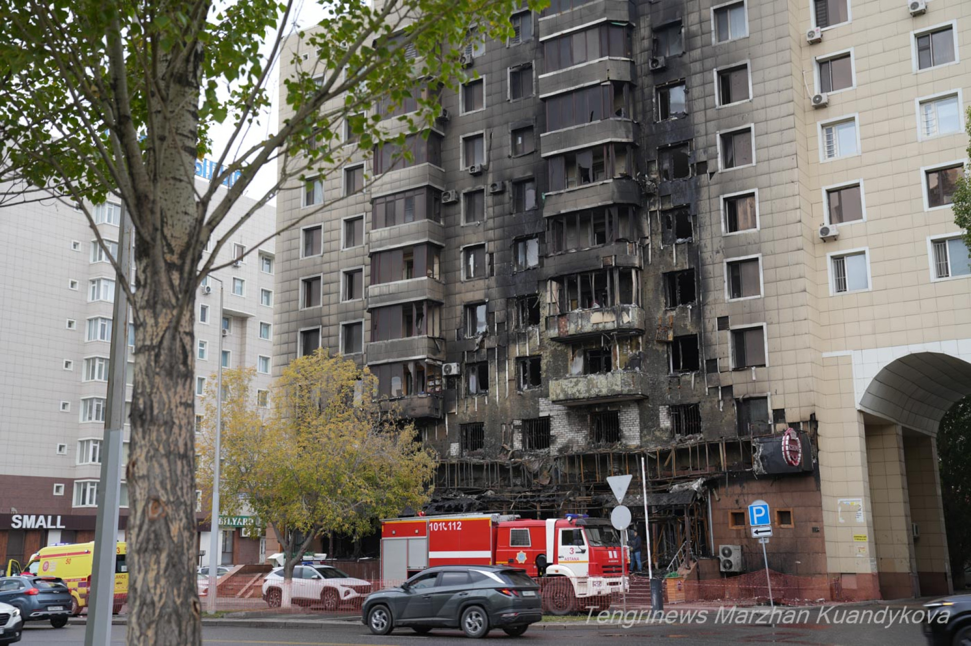 Ночью 18 сентября в одном из восьмиэтажных жилых домов в центре Астане произошёл масштабный пожар. Огонь охватил кафе, расположенное на первом этаже восьмиэтажки на пересечении улиц Акмешит и Достык. Корреспонденты Tengrinews.kz рассказывают, что происходит на месте.