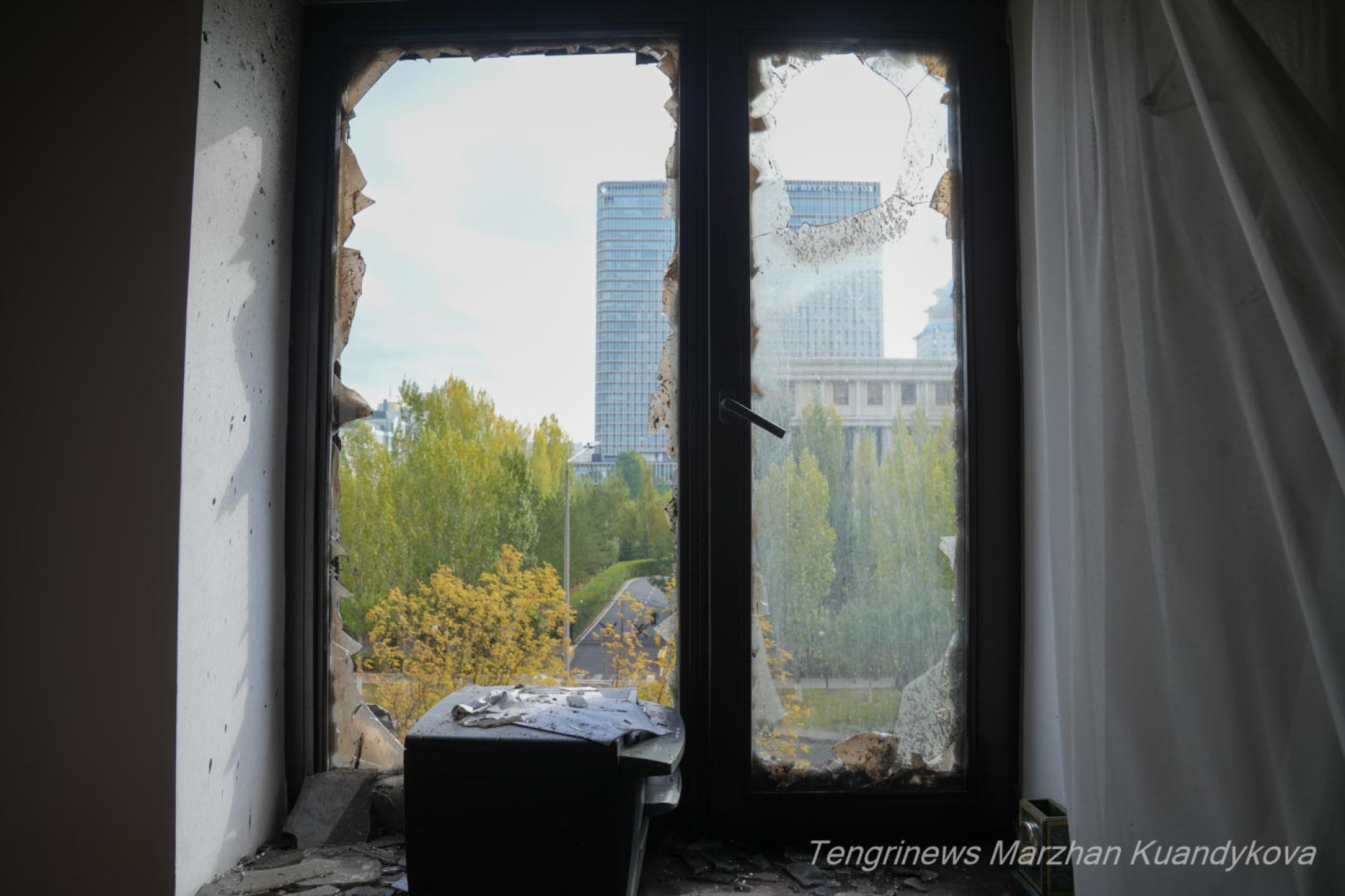 Нам удалось зайти в одну из пострадавших квартир. Хозяева показали, что осталось внутри: окна выбиты, осколки стекла усеяли пол, мебель и бытовая техника оказались повреждены.