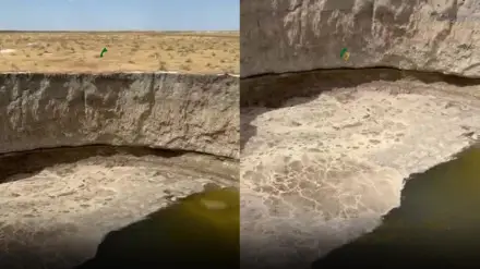 Огромная дыра образовалась в степи Атырауской области. В акимате сельского округа Бейбарыс рассказали подробности, передает корреспондент Tengrinews.kz.
