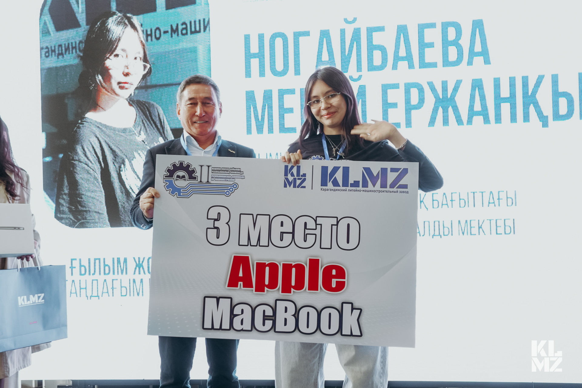 Третье место и MacBook достались единственной девушке среди финалистов — Мерей Ногайбаевой из Шымкента. 17-летняя школьница учится в 12-м классе Назарбаев Интеллектуальной школы и мечтает связать свою жизнь с наукой.