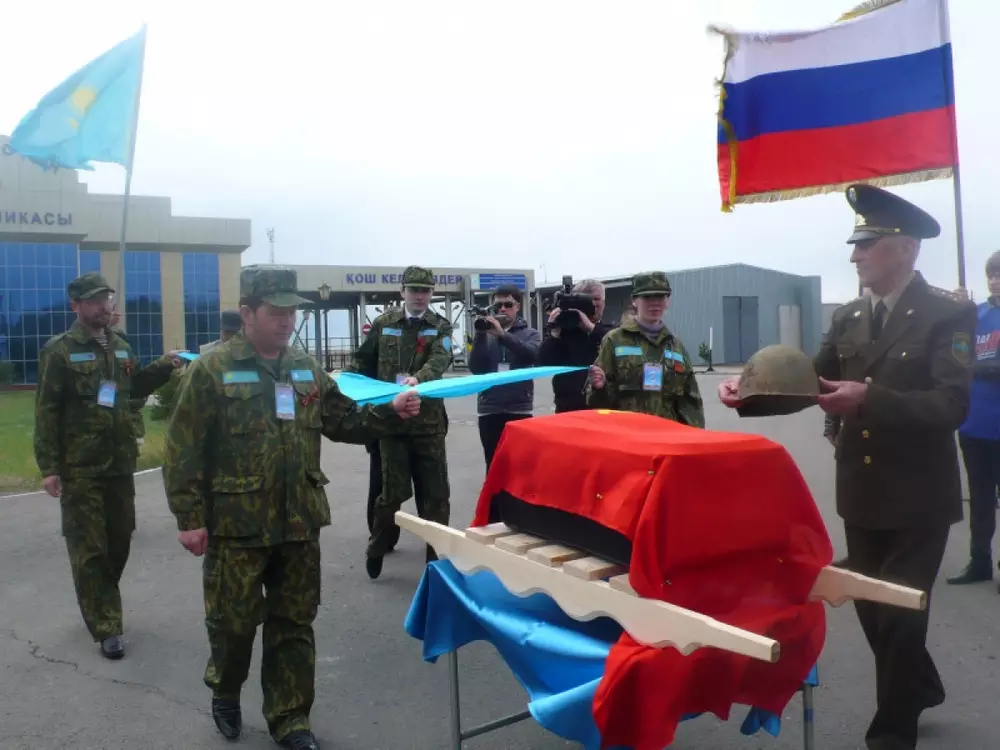 В сопровождении почетного караула, погребальная урна, накрытая красным знаменем, была передана казахстанской стороне на границе Омской и Павлодарской областей на посту "Урлютобе". Уже на территории погранпоста останки накрыли казахстанским флагом, и почтив память героя минутой молчания, передали родным и близким погибшего.