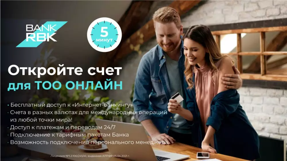 По окончании процедур видеоидентификации, проверки и регистрации в приложении RBK Business в течение нескольких минут открывается доступ к счету. Кстати, там же сразу можно открыть дополнительные счета в различных валютах, чтобы легко и эффективно управлять финансами своей компании не только в тенге, дополнительно есть возможность выбрать наиболее подходящий тарифный пакет, который соответствует потребностям его бизнеса. Для эффективного управления финансами также можно воспользоваться услугой персонального менеджера.