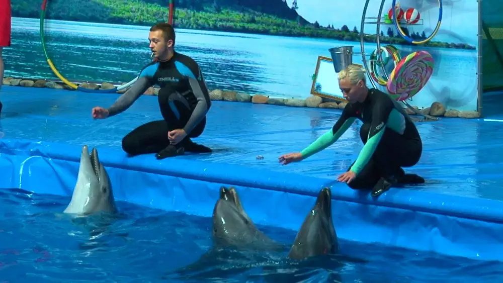 Всего новый дельфинарий в Алматы имеет шесть морских животных: тихоокеанский бутылконосый дельфин по имени Николь, два черноморских дельфина афалина - Катя и Юми, два южноамериканских морских котика Анфиса и Василиса, а также морская львица по имени Злата. Все животные были доставлены в Алматы из Одессы. Там находится главный офис компании и центр подготовки специалистов. "Когда мы переедем в стационарное помещение, мы также хотим привезти дельфина белуху. Периодически к нам смогут приезжать новые животные, и это будет сюрпризом для наших гостей", - добавил Старагин.