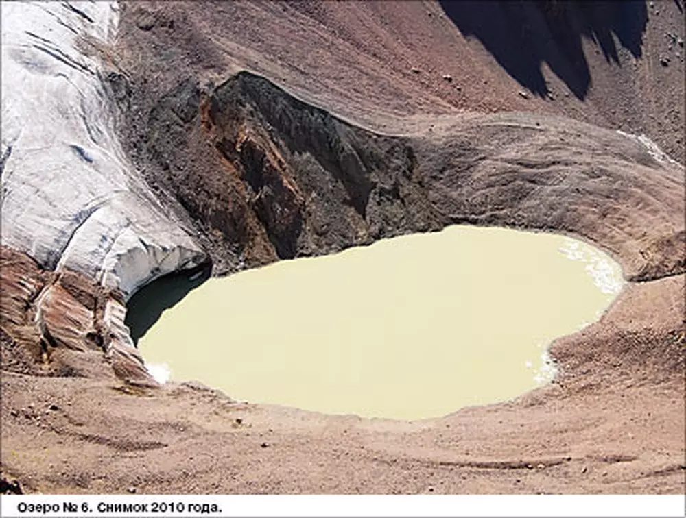 По его словам, за прошедшую зиму уровень воды в озере упал более чем на 10 метров, что свидетельствует об активной фильтрации воды через котловину в морену. А это может вызвать оползень или сель. "Я видел любительские снимки, сделанные альпинистами в начале апреля: озеро номер 6 на них - микроскопическое. Это тревожный знак. Ведь мы не знаем, куда и каким образом зимой из замерзшего озера уходила вода. Ясно одно: испариться она не могла", - заявил он.