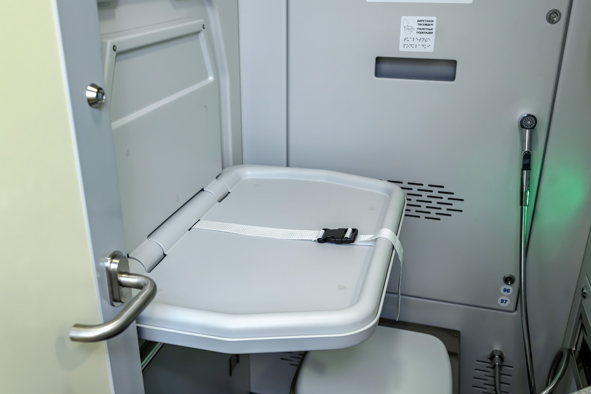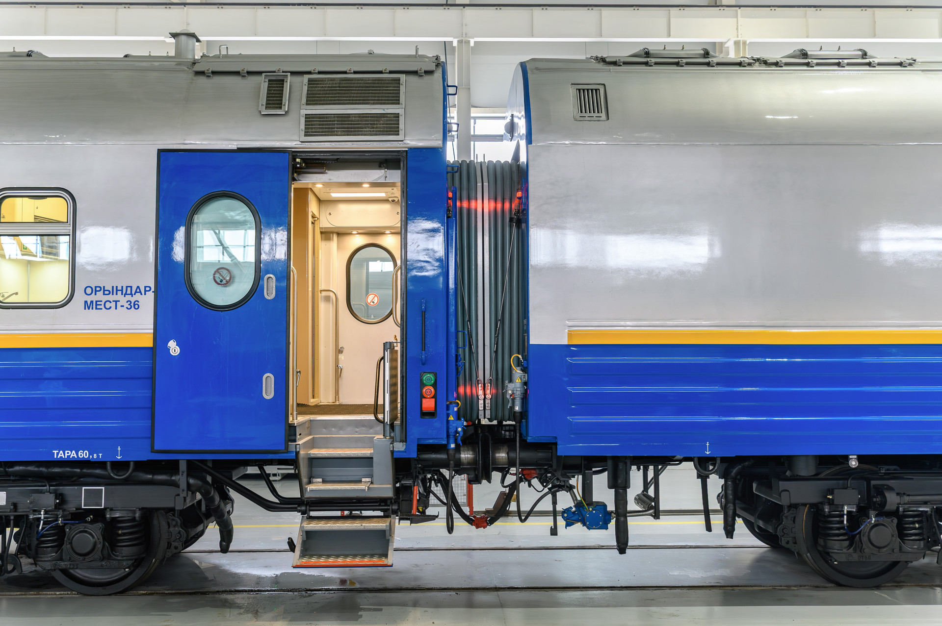 Все вагоны готовы к любым температурным режимам, вакуумные туалеты работают даже на длительных стоянках. Информационные табло дублируют информацию на казахском, русском и английском языках. Вагонные тележки обеспечивают "плавный ход".