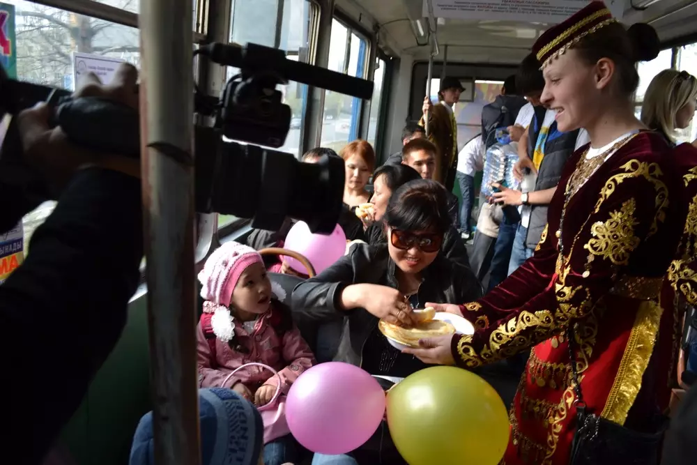 Пассажиров павлодарских трамваев угощали баурсаками, чак-чаком и блинами, передает корреспондент Tengrinews.kz со ссылкой на руководителя пресс-службы АО "Трамвайное управление" Павлодара Джамилю Маричеву. Такую гостеприимную акцию "Путь единства" устроили в павлодарских трамваях студенты и представители национальных культурных центров Павлодара. По пути следования инициаторы акции встречали пассажиров в национальных костюмах, рассказывали о традициях и обычаях народов, дарили открытки и угощали выпечкой. "Приятно, что люди в трамваях поддержали нашу инициативу и встретили нас очень доброжелательно. Мы были рады поднять настроение и сделать праздничный день еще ярче", - говорит Тахмина Рахимжанова, инспектор отдела развития молодежных проектов КГУ "Центр развития молодежных инициатив" Управления внутренней политики Павлодарской области. "Мы постарались задействовать в акции практически все городские трамваи, чтобы порадовать как можно больше горожан. Надеемся, наши пассажиры остались довольны", - отметила Маричева. По ее информации, за несколько часов акции национальные угощения отведали более тысячи павлодарцев.