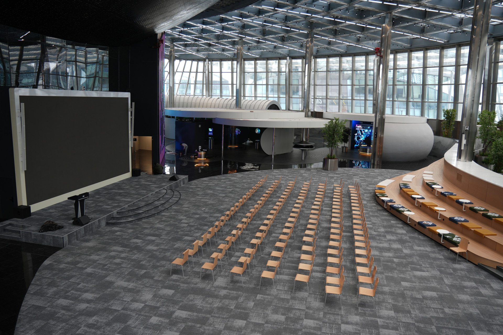 Проект, по данным компании, был реализован в сжатые сроки ‒ за 10 месяцев, что потребовало высокой точности планирования, синхронизации подрядных организаций и постоянного оперативного управления. Дополнительную сложность представляла интеграция мультимедийных решений в строительный цикл, где критически важной была точность взаимодействия всех систем.