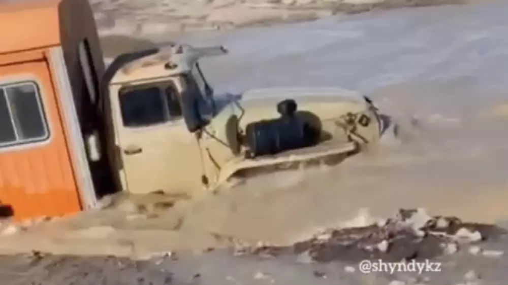 Грузовик с людьми едва не унесло паводком, в социальных сетях появилось видео, передает корреспондент Tengrinews.kz. Машина пытается переехать бурный поток воды, однако в какой-то момент ее начинает уносить течением. К счастью, благодаря опытному водителю, грузовику удается выбраться из воды.
