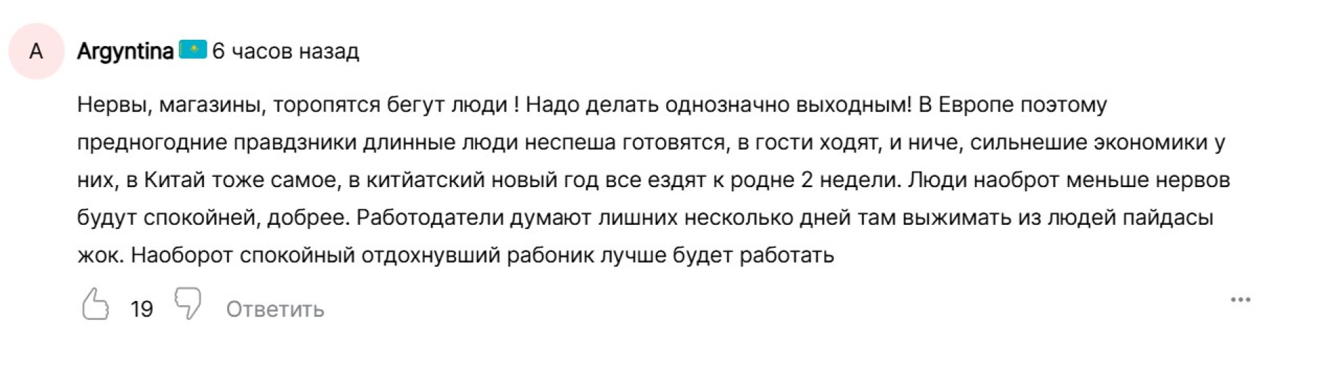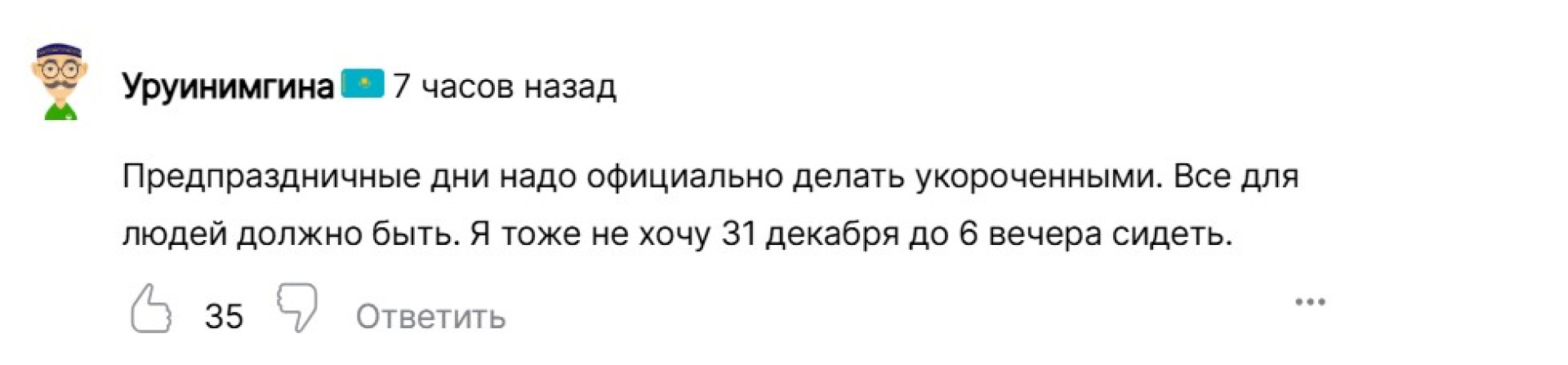 3. Казахстанцы просят сделать 31 декабря выходным днём