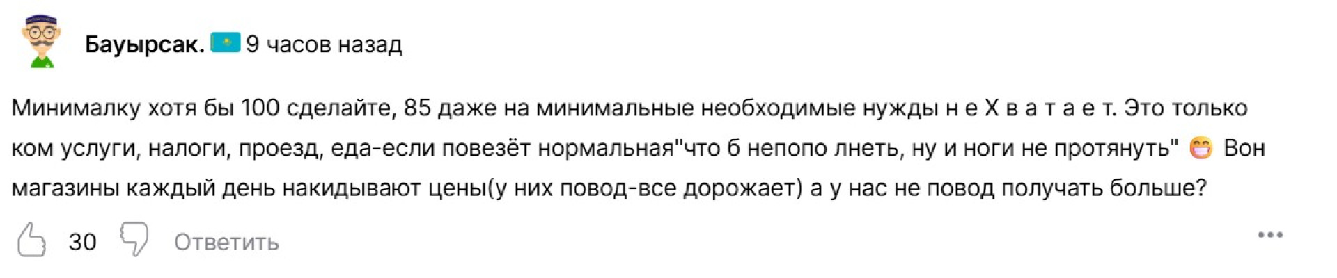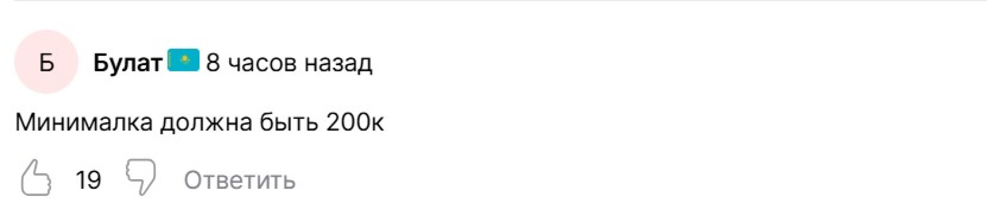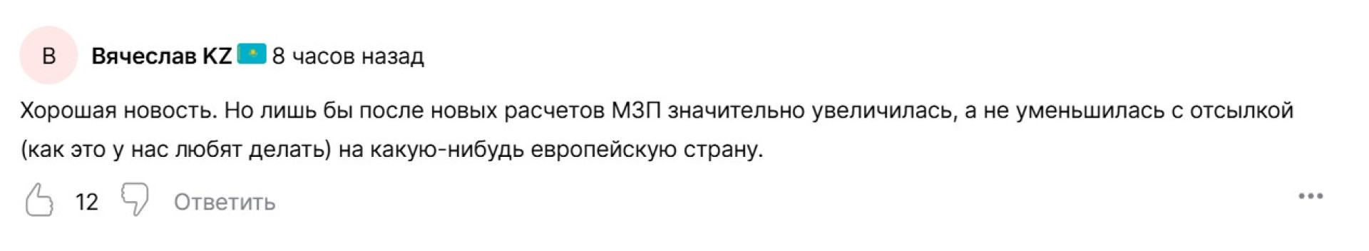 Читатели Tengrinews.kz отметили, что это хорошая новость, и выразили надежду, что МЗП будет расти. Некоторые высказали мнение, что в Казахстане слишком низкая МЗП - 85 тысяч тенге в 2025 году. И заявили, что её размер должен составлять хотя бы 100-200 тысяч. Другие считают, что в Казахстане в целом хорошие зарплаты, и ссылаются на данные ВВП.