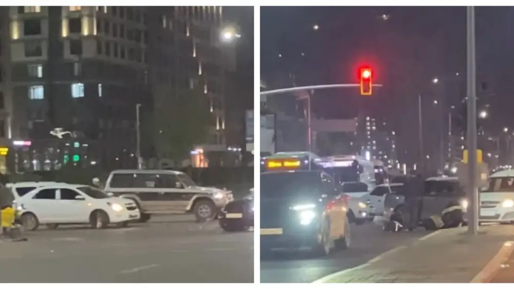 В сети распространяется видео наезда на водителя мопеда на оживленном перекрестке Астаны, передает Tengrinews.kz.