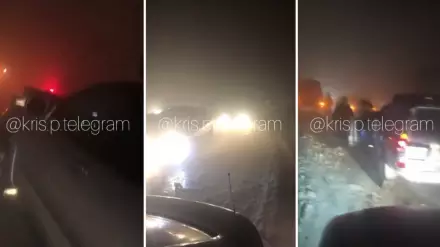"Массовое ДТП по бетонке Алматы - Капшагай, очевидцы отправляют видео с места. Туман и гололед, будьте осторожны. Очевидцы сообщают, что это, возможно, дым", - подписана публикация.